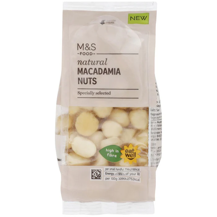Specially selected natural macadamia nuts. Perfect for snacking on. High in fiber.