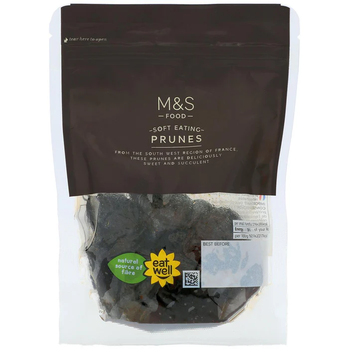 Partially rehydrated pitted prunes from the South West region of France, with a sweet flavor. Natural source of fiber. 1 of your 5 a day.