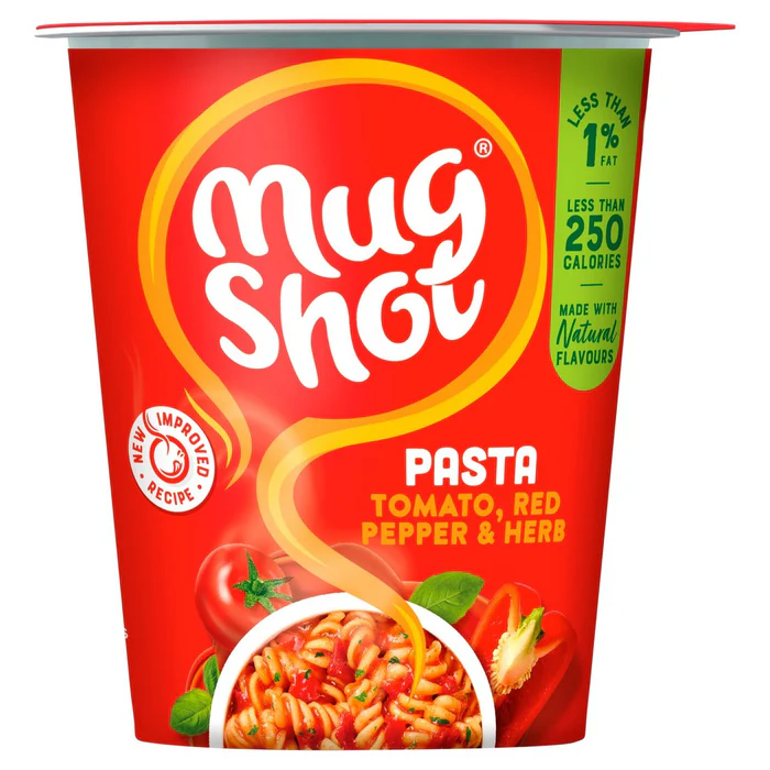 When you’re on the go, take time out for a few delicious minutes with mug shot, the warm, comforting, convenient flavor-packed snack. For the perfect pick me up, wherever you’re heading. Less than 1% Fat, Less than 250 Calories, Made with natural Flavors, Ready in 5 Minutes, No Artificial Colors, Suitable for Vegetarians.