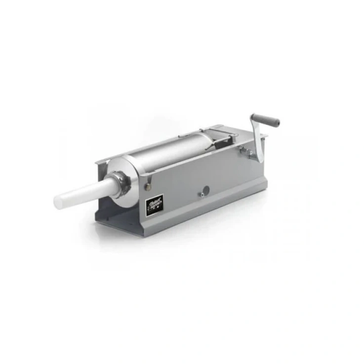 Modèle 5 L2 vitesses4 entonnoirs inclus de dimensions différentesSystème d’expulsion d’airEngrenage intégré pour réduire ou multiplier la vitesse d’ensachageCorps en acier couleur grisCuve inoxUsage horizontal