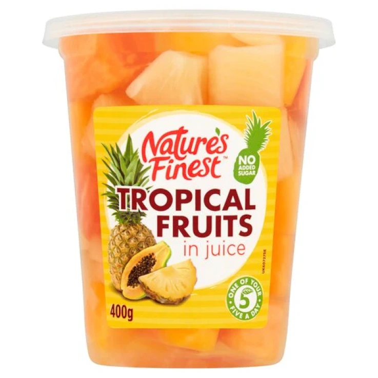 Tropical Fruits in juice. No Added Sugar – Contains Naturally Occurring Sugars