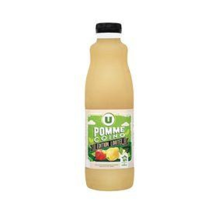 Eau, purées de fruits (pomme 20%, coing 20%), jus de pomme à base de concentré (10%), sucre, acidifiant : jus de citron à base de concentré, antioxydant : acide ascorbique . Certains ingrédients de ce produit ne proviennent pas de France.
