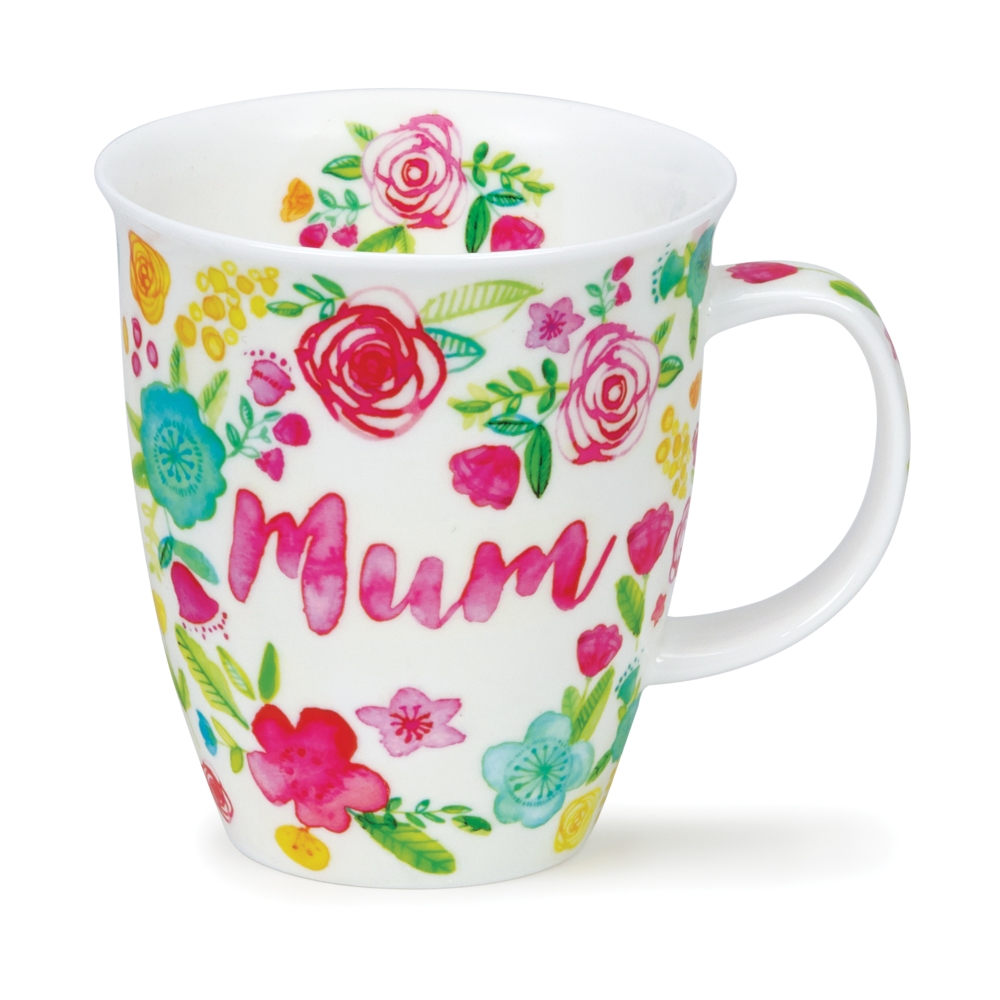 Let your mum know how much you care with this pretty mum mug designed by Rebecca Hogg, with the word Mum penned on the front and back, surrounded by flowers in bright blues, pinks and yellows.