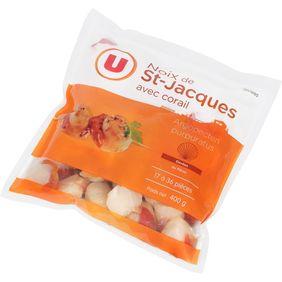Noix de Saint-Jacques avec corail – Argopecten purpuratus – surgelées Noix de Saint Jacques avec corail (Argopecten purpuratus), élevées au Pérou. /