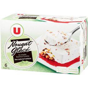 Eau, LAIT Ă©crĂ©mĂ© rĂ©hydratĂ©, CREME, crème de nougat 10,9% (AMANDES grillĂ©es 5,7%, sucre, miel, blanc d’OEUF en poudre), sucre, LACTOSE et protĂ©ines de LAIT, sirop de glucose-fructose, morceaux de noisettes caramĂ©lisĂ©es 2,3% (NOISETTES 1,1%, sucre), amandes hachĂ©es caramĂ©lisĂ©es 2,3% (AMANDES 1,3%, sucre), grains de pralinĂ© 2,3% (sucre, AMANDES et NOISETTES torrĂ©fiĂ©es), sirop de glucose, miel de tournesol 0,9%, pistaches hachĂ©es caramĂ©lisĂ©es 0,8% (PISTACHES 0,4%, sucre), Ă©mulsifiants : esters lactiques de mono et diglycĂ©rides d’acides gras – mono et diglycĂ©rides d’acides gras, gĂ©lifiants : carraghĂ©nanes – farine de graines de caroube – gomme guar – PISTACHES hachĂ©es grillĂ©es 0,6%, pĂ©pites de sucre saveur fraise 0,6% (sucre, beurre de cacao, sirop de glucose, arĂ´me naturel de fraise avec autres arĂ´mes naturels, jus concentrĂ© de sureau, correcteur d’aciditĂ© : acide citrique), arĂ´me naturel, dextrose. Les pourcentages sont exprimĂ©s sur la crème glacĂ©e. Sachet de coulis de framboise (80g) : framboise 83%, sucre. Pourcentage exprimĂ© sur le coulis de framboise. Certains ingrĂ©dients de ce produit ne proviennent pas de France. Traces Ă©ventuelles de gluten, arachide, soja et autres fruits Ă  coques.
