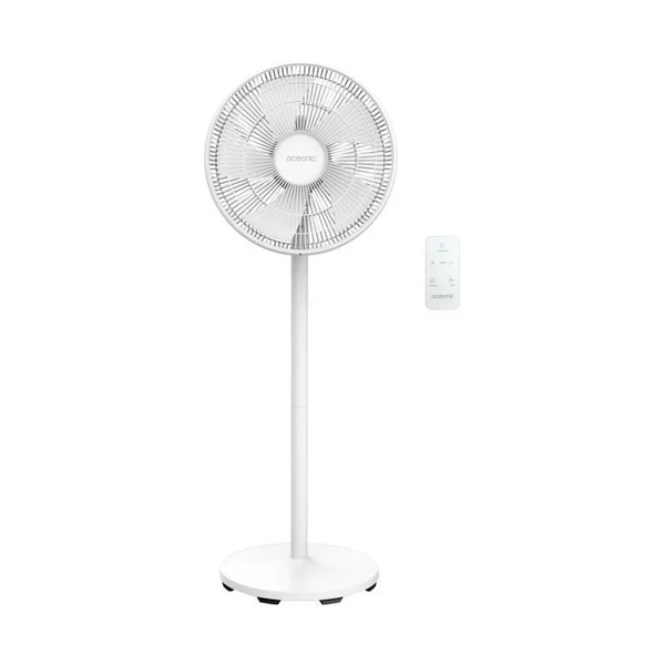 OCEANIC – Ventilateur de pied 40 cm – 50 W – 3 vitesses – Fonction rotative et inclinable – Hauteur réglable jusqu’a 113.5 cm – 5 pales – Télécommande (Pile non inclus) – Minuterie de 8 h – Blanc
