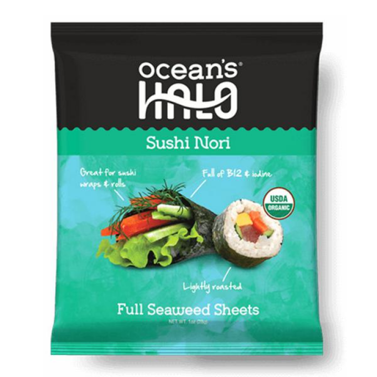 Ocean’s Halo Feuilles d’algues nori bio pour sushi végétalien, 28 g