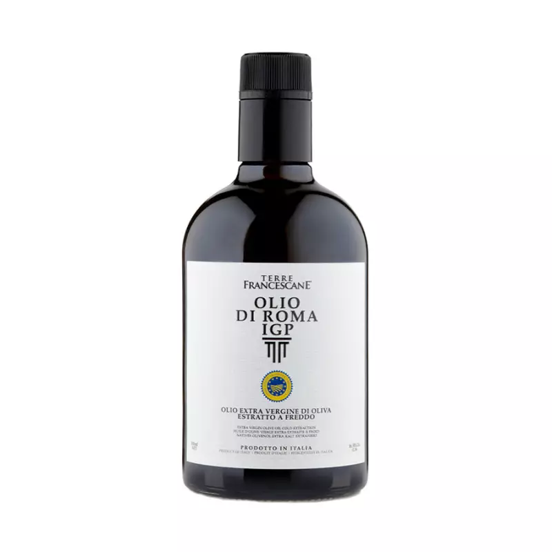 The Extra Virgin olive oil IGP Roma Terre Francescane, is an IGP certification recognised in 2021. It is produced in the provinces of Rome, Viterbo, Frosinone and Latina, with the exception of a few municipalities. This medium fruity oil with a balanced taste is distinguished by its hints of artichoke and delicate almond aftertaste. Obtained mainly from olives of the Frantoio, Leccino and Rosciola varieties, it represents the excellence of the oil art of central Italy.
