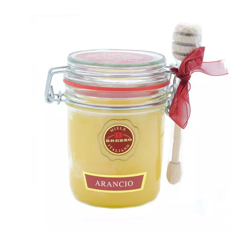 Brezzo Orange Honey 400 g from the Antologia line is a delicacy with an intense fragrance and floral notes, obtained from selected hives in the best citrus groves. Belonging to the prestigious Antologia line of Brezzo honeys, it represents an exclusive production, reserved for the most demanding palates. Its hue varies from straw yellow in its liquid state to white or light beige shades once crystallised. Perfect for typical cheeses such as ragusano and caciocavallo, it is also excellent in confectionery, at breakfast and as a sweetener for cold drinks. Stored in a refined hermetic jar and accompanied by a wooden spreader, it is an excellent gift idea for those who love genuine and refined flavours.