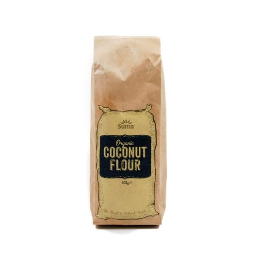 Organic coconut flour is faintly sweet and very nutritious thanks to its naturally high fibre content. It is a gluten-free flour, making it perfect for coeliac diets. The flour can be used in a similar way to other grain-based flours, such as baking, pancake-making, thickening gravies and soups.