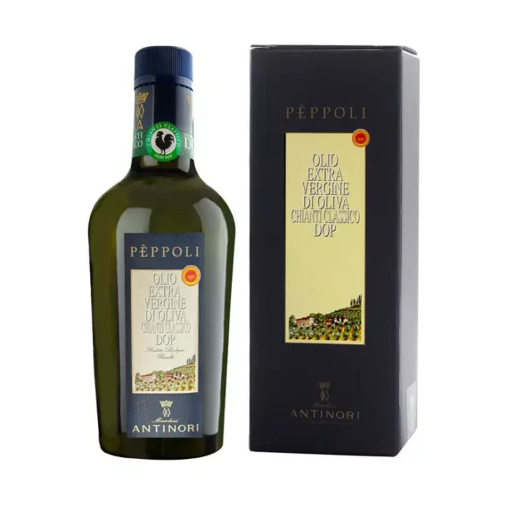 Organic Pèppoli DOP Chianti Classico Organic extra virgin olive oil by Antinori is produced in the Pèppoli Estate, located in the Chianti region, near San Casciano Val di Pesa, at an altitude of 300 – 350 meters above sea level. The estate has a total area of about 100 hectares, 27 of which are planted with olive groves, with some centuries-old trees of Frantoio, Leccino and Moraiolo varieties. The olives are harvested by hand and pressed within 12 hours from harvesting.