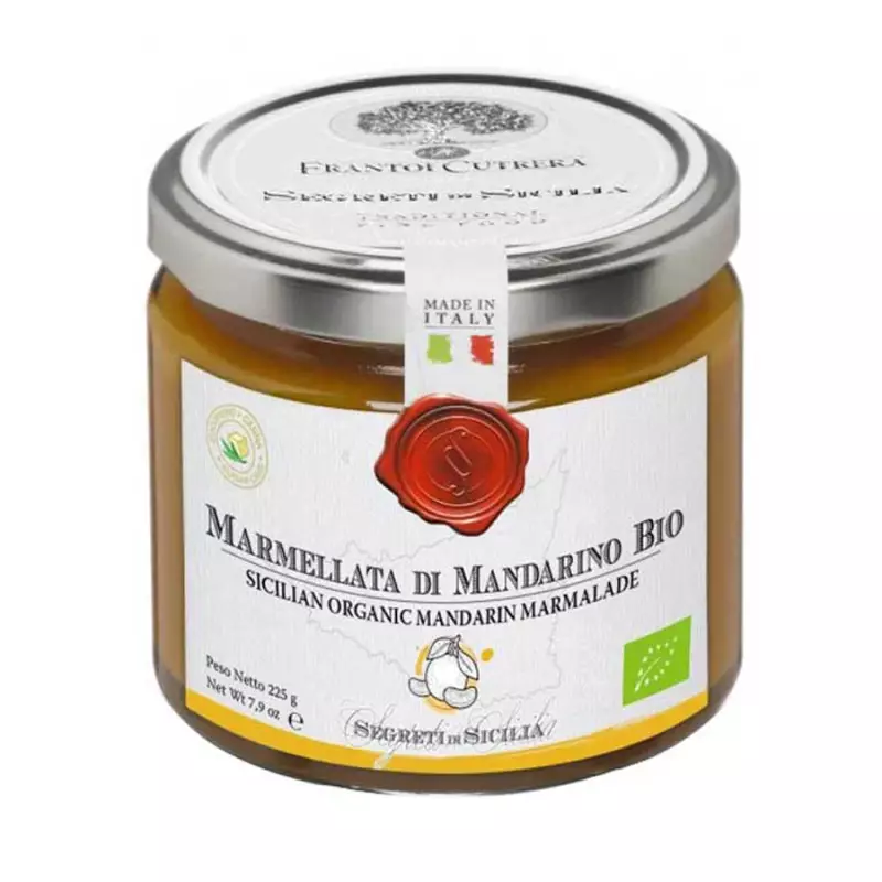 Segreti di Sicilia BIO Mandarin Marmalade is made with sweet Sicilian mandarins of the late variety, organically grown in the sunny lands of Sicily. Thanks to careful processing and low-temperature cooking, it preserves all the intense aroma and enveloping flavour of the mandarins, while keeping their precious nutritional properties intact. Naturally rich in vitamins B1 and B2, it is perfect for a genuine breakfast or snack, spread on toasted bread or biscuits. Delicious to enrich white yoghurt, it goes well with fresh soft cheeses and adds a refined touch to the preparation of cakes and desserts.