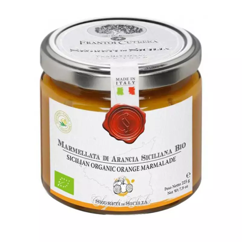 Segreti di Sicilia BIO Sicilian Orange Marmalade is made from blond Sicilian oranges organically grown in the fertile lands of the provinces of Ragusa and Catania. Thanks to low-temperature cooking, it preserves all the intense colour, unique flavour and valuable nutritional properties of the citrus fruit. The perfect balance of sweetness and bitterness is guaranteed by the use of cane sugar and orange peel. This Cutrera BIO Sicilian Oranges jam is ideal to spread on toasted bread or biscuits for a genuine breakfast or snack. Perfect for enriching white yoghurt with a touch of sweetness, it pairs beautifully with fresh cheeses such as ricotta and robiola and is a valuable ingredient in the preparation of gourmet cakes and desserts.