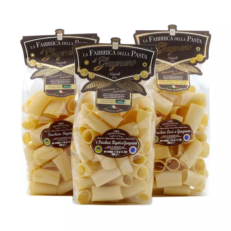 Paccheri Gragnano Pasta PGI Trio – Paccheri Lisci, Paccheri Rigati and Pacchero Rigatello 500 gr x 3