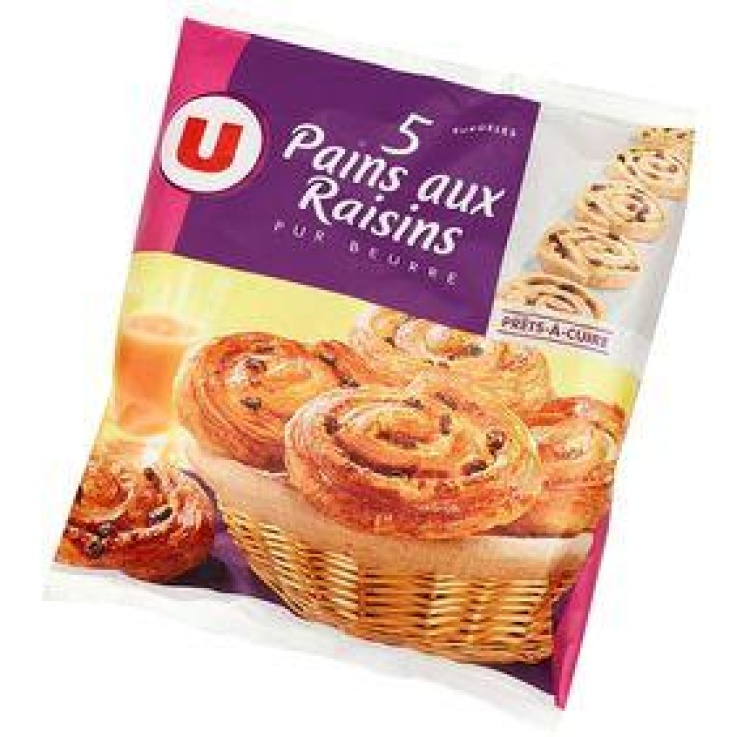 Pains aux raisins pur beurre prêt à cuire U, x5, sachet 550g