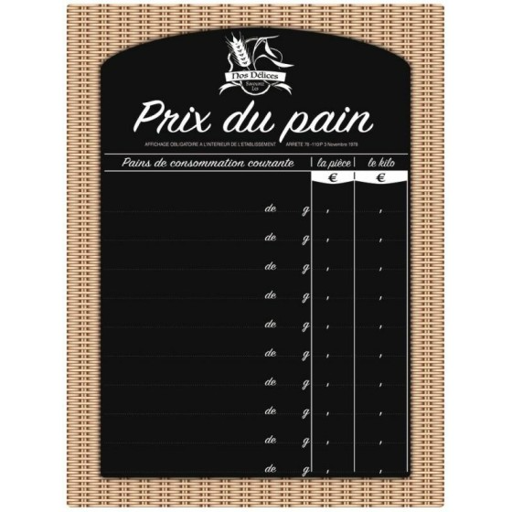 Panneau prix du pain 30 x 40 cm : Affichez les tarifs de vos pains