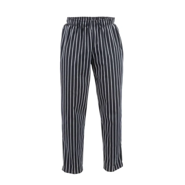 Le pantalon de cuisine mixte Chef Works est un pantalon Easyfit (M), Ć  rayures noires et blanches, garantissant un confort quotidien en cuisine. Nettoyage facile sans aucun bouton susceptible de casser. ModĆØle disponible en polyester-coton enduit de Teflon pour une protection supplĆ©mentaire contre les projections. Ce pantalon a une coupe classique, tombant naturellement Ć  la taille avec une coupe plus dĆ©contractĆ©e sur toute la cuisse et le bas de la jambe pour un style professionnel…
