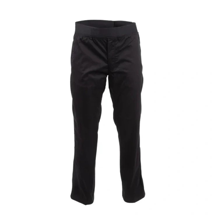 Ces pantalons noirs élégants peuvent être portés en salle comme en cuisine. Avec poches avant et arrière pratiques, coutures invisibles et coutures doubles au niveau des points de tension pour les renforcer.