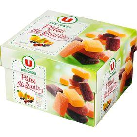 PĆ¢te de fruits saveur cassis : pulpes de fruits 57% (pomme 40%, cassis 17%), sucre, sirop de glucose,gĆ©lifiant : pectine de fruits, acidifiant : acide citrique, arĆ“me naturel de cassis avec autres arĆ“mes naturels.PĆ¢te de fruits saveur abricot : pulpes de fruits 53% (pomme 40%, abricot 13%), sucre, sirop de glucose ,gĆ©lifiant : pectine de fruits, acidifiant : acide citrique, arĆ“me naturel d’abricot avec autres arĆ“mes naturels. PĆ¢te de fruits saveur mĆ»re : pulpes de fruits 53% (pomme 40%, mĆ»re 13%), sucre, sirop de glucose ,gĆ©lifiant : pectine de fruits, acidifiant : acide citrique, arĆ“me naturel de mĆ»re avec autres arĆ“mes naturels. PĆ¢te de fruits Ć la pomme : pulpe de pomme 53%, sucre, sirop de glucose , gĆ©lifiant : pectine de fruits, acidifiant : acide citrique, arĆ“me naturel de pomme avec autres arĆ“mes naturels. PĆ¢te de fruits saveur cerise : pulpes de fruits 53% (pomme 40%, cerise 13%), sucre, sirop de glucose, gĆ©lifiant : pectine de fruits, acidifiant : acide citrique, arĆ“me naturel de cerise avec autres arĆ“mes naturels. PĆ¢te de fruits saveur poire : pulpes de fruits 52.5% (pomme 40%, poire 12.5%), sucre, sirop de glucose , gĆ©lifiant : pectine de fruits, acidifiant : acide citrique, arĆ“me naturel de poire avec autres arĆ“mes naturels.