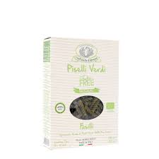 Fusilli à la Farine de Pois Bio Pâtes à base de farine de pois sans gluten à base de pois verts biologiques cultivés en Italie 2 50g dans une boîte en carton –  Rustichella d’Abruzzo.