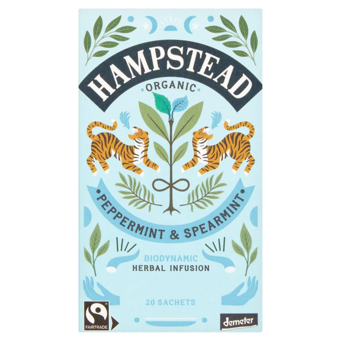 Peppermint & Spearmint Tea Bags Organic Biodynamic Fairtrade Hampstead Tea 20 per pack