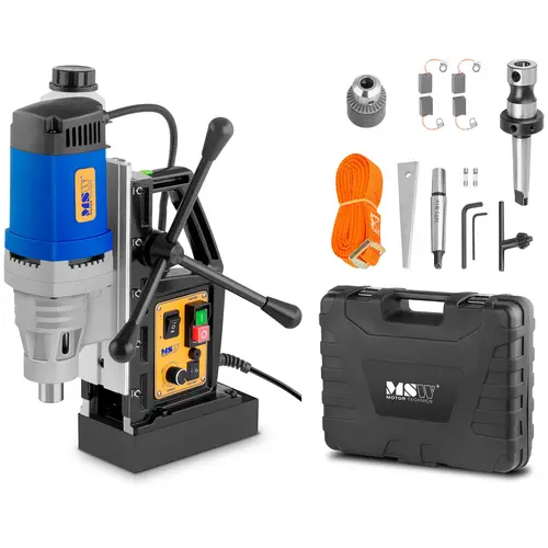 Développant 1 380 watts, la perceuse magnétique de MSW se révèle être un véritable concentré de puissance lorsqu’il est question de travaux sur surfaces magnétiques, que vous deviez l’utiliser à la verticale ou à l’horizontale. Son puissant pied électromagnétique la maintient dans la position souhaitée de façon fiable. La perceuse magnétique rend de fiables et précieux services dans les domaines industriel et professionnel du traitement des métaux. La machine est appropriée pour le perçage, l’alésage, le taraudage et le trépanage.