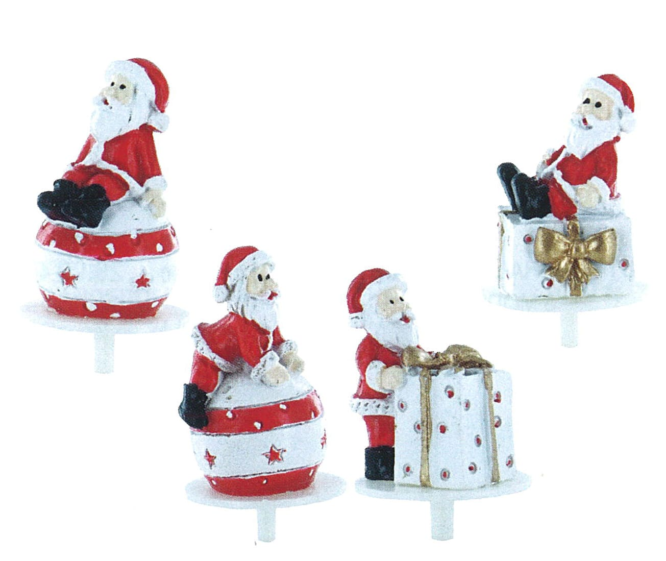 Père Noël sur boules et cadeaux en résine.