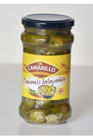 ⢠Marque : Camarillo ⢠Origine : Pérou ⢠Conditionnement : Pot 280g ⢠Ingrédients : piments Jalapeño, eau, sel, acidifiant : E260, affermissant : E509.