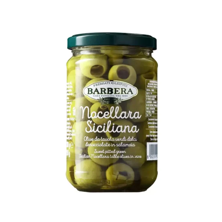 Pitted Nocellara Sicilian Olives in brine Barbera are distinguished from other varieties by their size and bright green colour. Thanks to their dense and juicy flesh, they are among the most popular table olives, and in their stone-free version they are also easier to taste or use for delicious and colourful aperitifs and appetisers. Due to the method by which they are processed, they are also called Castelvetrano Olives. Barbera’s pitted Nocellara del Belice Sicilian Sweet Green Olives are pickled, i.e. immersed in a solution of water and salt that keeps their taste and texture intact.