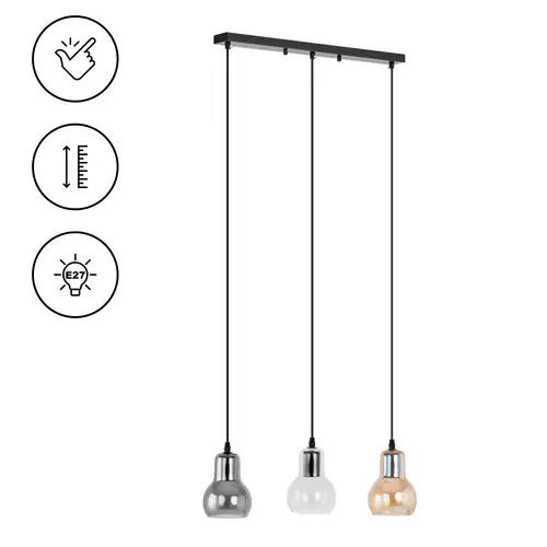 Placez cet éclairage de plafond dans la pièce selon vos envies, que ce soit au-dessus d’une table ou au milieu de la pièce. Les cinq sources lumineuses éclairent n’importe quel environnement et impressionnent par leurs élégants abat-jour en verre fumé. Le câble de la source lumineuse ainsi que le cache du plafond sont discrètement peints en noir, de sorte qu’ils disparaissent dans la pièce.