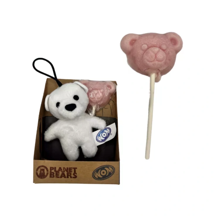 WOM – Sucette de 11 g accompagnée d’un ourson en peluche porte-clé – Vendu en gros conditionnement sur carton présentoir contenant 12 unités