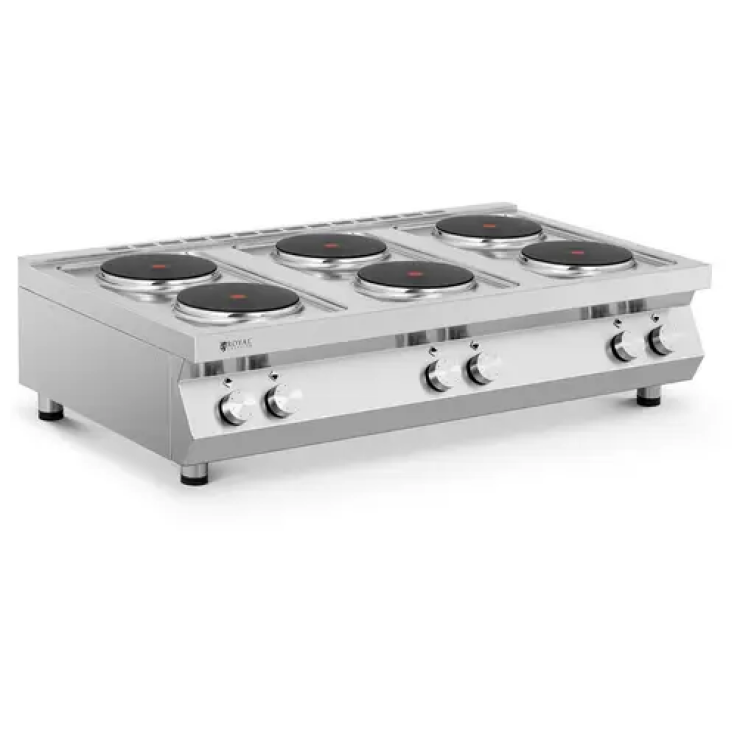 Une plaque de cuisson électrique, compacte, en inox, à six feux