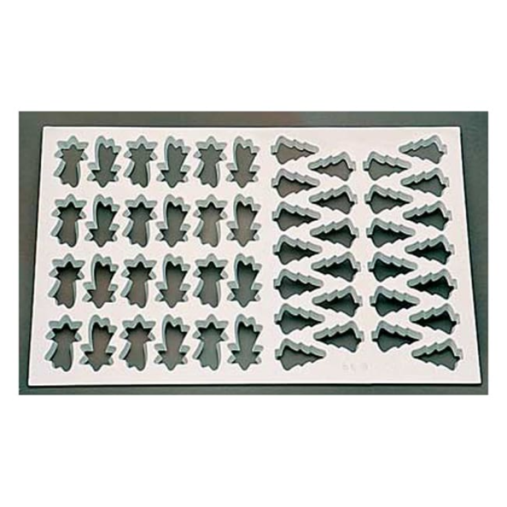 Plaque de découpoirs “26 sapins + 24 étoiles filantes” permettant de réaliser rapidement rapidement et facilement des découpes de pâtes.