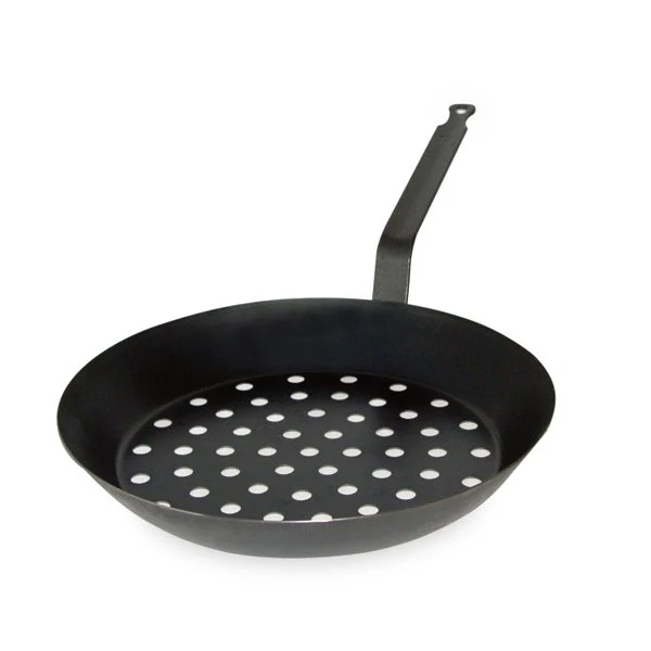 Traditionnelle, la poêle à marrons est fabriquée en tôle d’acier connu pour sa robustesse et dispose de trous dans le fond. Pratique, elle vous permet de saisir et de cuire très facilement vos marrons et châtaignes sur la braise ou sur vos plaques de cuisson sans les brûler. En tôle, cette poêle assure une cuisson rapide et homogène de vos aliments. Son fond ajouré permet une diffusion optimale de la chaleur, pour des châtaignes cuites à point.