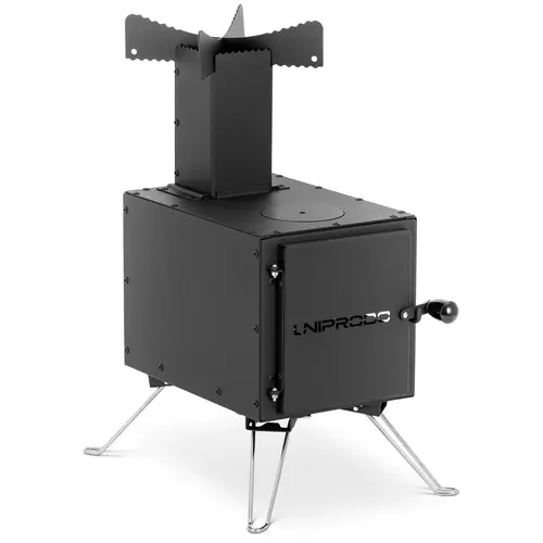 Sa conception robuste en acier au carbone et un revĂȘtement rĂ©sistant Ă  la chaleur font de ce poĂȘle Rocket Stove un excellent barbecue pour le camping ou dans votre jardin. Il se monte rapidement et repose en toute sĂ©curitĂ© sur quatre pieds stables. Pour le combustible, il suffit d’utiliser du bois, du charbon ou des pellets, que vous placez sur une grille Ă  l’intĂ©rieur par le cĂŽtĂ© pour alimenter le feu. Une fenĂȘtre de contrĂŽle vous permet de toujours garder un Ɠil sur la flamme.