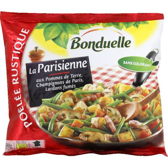 Poêlée La Parisienne aux pommes de terre, champignons de Paris e t lardons fumés, surgelée