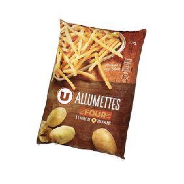 Pommes allumettes au four enrobées, préfrites et surgelées Pomme de terre 92,3%, huile de tournesol 4,5%, amidon modifié de pomme de terre, dextrine, sel, farine de riz, épice, dextrose.