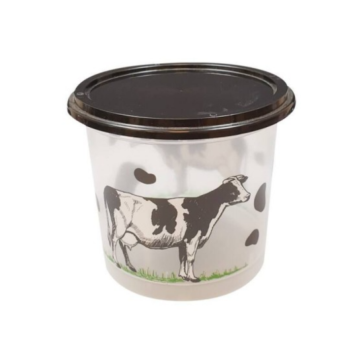 Pot plastique transparent avec couvercle noir “Produits laitiers” 500 ml – par 250