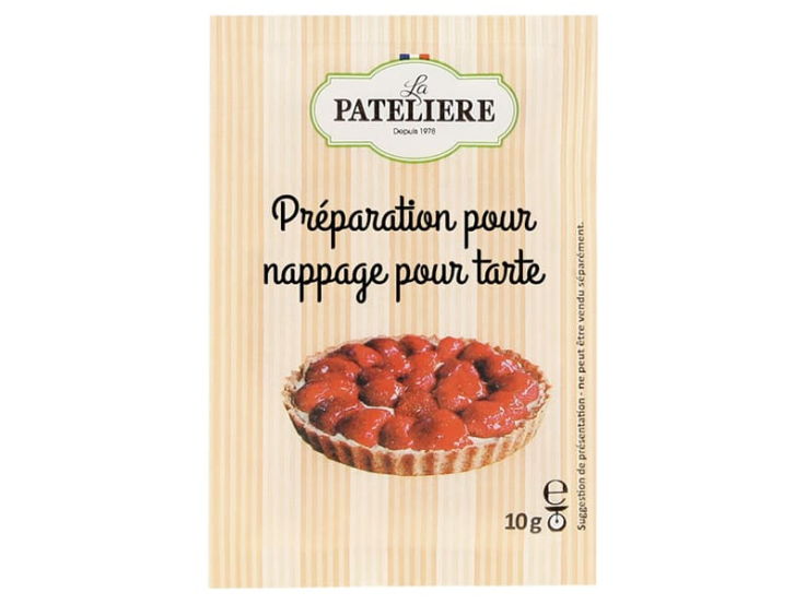 Dissoudre dans une casserole 25 g de sucre dans 125 ml d’eau. Ajoutez en pluie le contenu d’un sachet. Mélangez jusqu’à dissolution complète. Portez le mélange à ébullition puis maintenir à petite ébullition pendant 1 min. Répartir le mélange régulièrement sur la tarte refroidie à l’aide d’un pinceau souple. La prise du nappage se fait en 1 h à température ambiante et en 15 min au réfrigérateur.