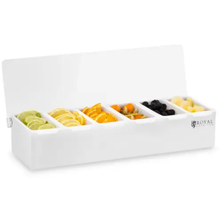 Pour une préparation de plats professionnels, il est important d’avoir tout sous la main. Avec le présentoir à récipients RCCBP 6 de Royal Catering, vous serez organisé au mieux. De nombreux ingrédients, comme des crudités ou des fruits peuvent être conservés indépendamment les uns des autres dans les récipients et rester ainsi frais pour la création de nombreux plats. Avec ces conteneurs, vous avez là une solution moderne pour les cuisines professionnelles de restaurants, bistrots, bars, fast-foods, stands de festivals ou services de restauration collective.