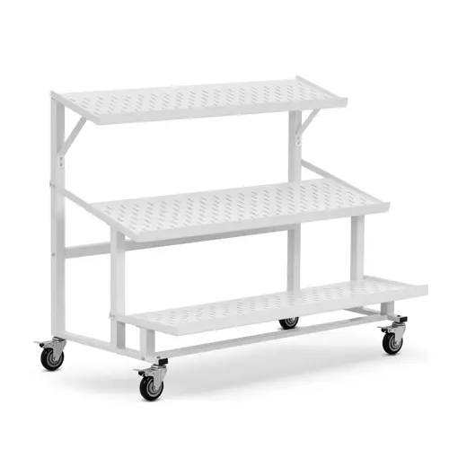 Une variété fruitée pour tous les goûts : présentoir fruits et légumes à roulettes sur trois niveaux
