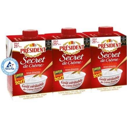PRESIDENT SECRE DE CREME 25% MG UHT 3X20CL Pays de fabrication : FRANCE DLC minimum garantie: 7 jours