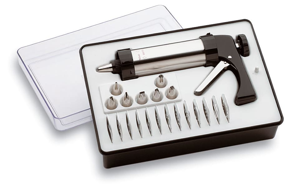 - Livrée avec 7 douilles inox et 13 formes biscuit