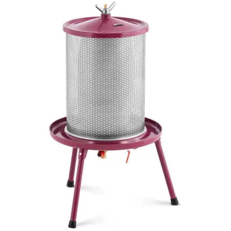 Avec sa capacité élevée et sa pression de travail maximale de 3 bars, la presse hydraulique de 40 litres permet de presser rapidement et efficacement de grandes quantités de fruits. Grâce à un raccord avec sortie et entrée (3/4”) et un manomètre, son utilisation devient un jeu d’enfant. Il en va de même pour l’entretien : comme il n’y a pas de pièces rotatives, seul un nettoyage après utilisation est nécessaire. Avec un récipient à tamis en acier inoxydable et une base en fer stable, le presse-fruits est particulièrement robuste et promet une longue durée de vie.