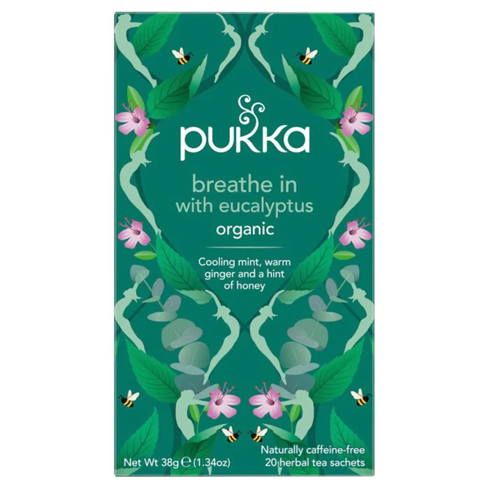 This herbal tea blends the refreshing aroma of mint and eucalyptus, with the warming sensation of ginger and the soothing support of honey. Inhale the steam to refresh and drink to soothe. Organic, Cooling mint, warm ginger and a hint of honey, naturally caffeine-free, take a moment to inhale the refreshing aroma of mint and eucalyptus, with ginger to bring warmth and a touch of honey to gently soothe.