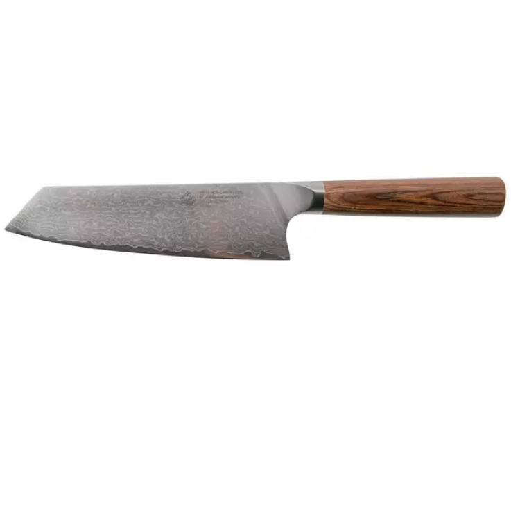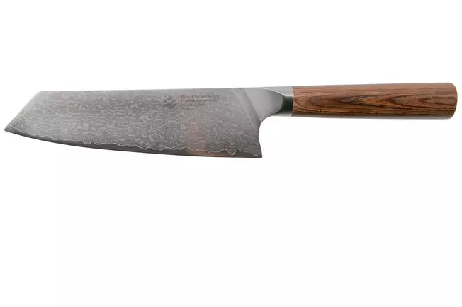 Le couteau PUMA IP Santoku est un couteau santoku de taille moyenne. La belle lame en acier Damas mesure 18 cm de long. Le santoku est réputé pour couper en douceur la viande, le poisson et les légumes. Ce couteau a un beau manche en bois de pakka. Ce bois de bouleau foncé donne au couteau un aspect traditionnel et sophistiqué. La série de couteaux de cuisine PUMA IP est basée sur un design d’Ernst Siebeneicher-Hellwig et combine un acier japonais de haute qualité avec un design et des méthodes de production modernes. Tous les couteaux de cuisine PUMA IP sont livrés dans une belle boîte cadeau qui sert également de boîte de rangement et même de présentoir.