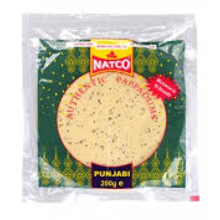 Punjabi poppadoms are lentil wafers, made from ground urid dal, and flavoured, in traditional Punjabi style, with cracked black peppercorns, which give a distinctive fiery and aromatic note. Crisp-textured poppadoms are a hugely popular snack, often served as a pre-meal appetiser with drinks such as refreshing lager or gin and tonic.