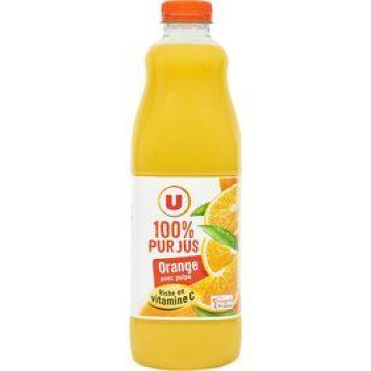 Jus d’orange avec pulpe Jus d’orange, pulpes d’orange (3%). Les ingrédients de ce produit ne proviennent pas de France.