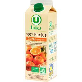 Pur jus d’orange sans pulpe U BIO, brique de 1l