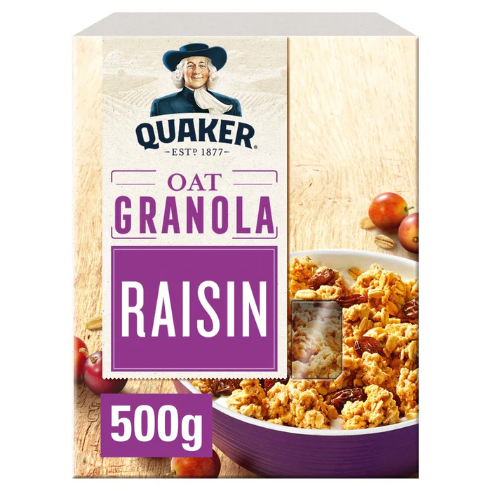 Made with 100% wholegrain oats. Deliciously crunchy granola clusters with sweet and juicy raisins. Enjoy with a splash of milk or served with yogurt and your favorite fruity compote. Helps lower cholesterol Oat beta-glucan has been shown to lower blood cholesterol. High cholesterol is a risk factor in the development of coronary heart disease. 30% Less Fat Than Other Granolas on Average, 100% Whole Grain Oats, High in Fiber, Natural Flavors, Helps lower cholesterol.
